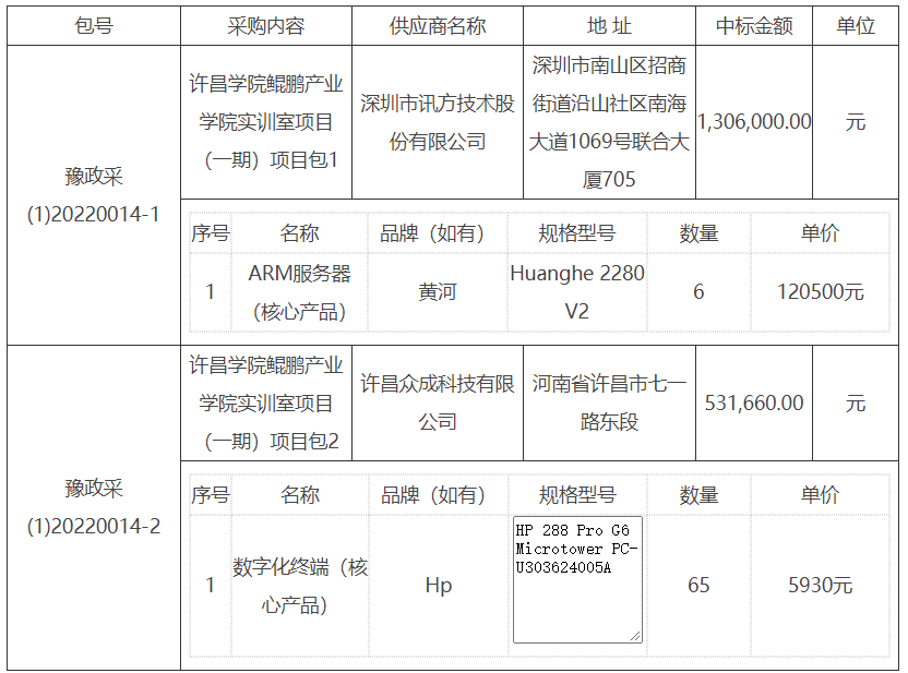 2、采购项目名称:许昌学院鲲鹏产业学院实训室项目(一期)项目