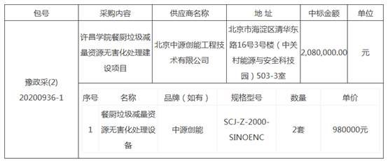 2、采购项目名称:许昌学院餐厨垃圾减量资源无害化处理建设项目