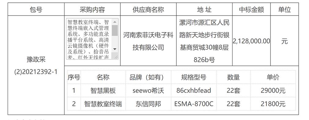 本次中标公告在《河南省政府采购网》、《河南省公共资源交易中心门户网》上发布,中标公告期限为1个工作日 。