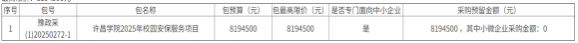 许昌学院2025年校园安保服务项目招标项目的潜在投标人应在河南省公共资源交易中心网(hnsggzyjy.henan.gov.cn)。获取招标文件,并于2025年12月10日09时00分(北京时间)前递交投标文件。